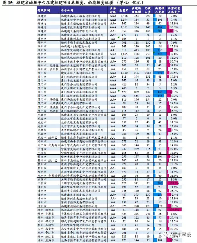 5、福建城投平台在建项目投资情况和待投资压力对比