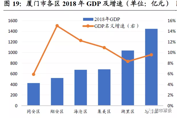海沧区:位于厦门岛西面,是全国最大的国家级台商投资区,具有优越港口条件,为沿海贸易提供良好物流条件,常住人口37.5万人。2018年GDP实现676.11亿元,同比7.7%。全区一般公共预算收入40.1亿元,增长3.3%。厦门海沧为海沧区最大国有企业,18年在资产重组后园区开发板块运营主体被划出,公司后续不承担园区开发或产业投资等任务,定位为区属商业运营平台,18-19年新增半导体业务、旅游开发、陵园销售等,业务范围发生较大变化。