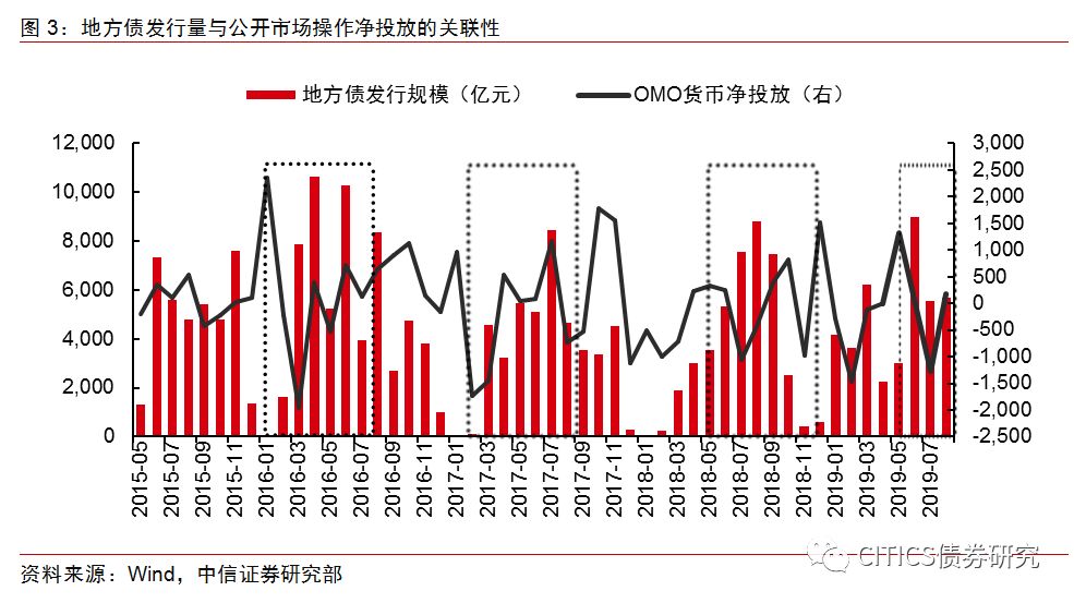 财政政策和货币政策同为宏观调控的重要方式,加强货币政策和财政政策的协调配合,在地方债层面实际上是央行采取操作维护流动性合理充裕,支持地方政府债券发行。在地方债发行时期,为对冲地方政府发行缴款,央行会采取OMO、MLF等操作,在地方债加快发行的背景下提供相对稳定的流动性支持。在利率债供给上,出于财政政策和货币政策配合的考虑,在利率上行周期地方政府债供给通常不会大幅扩张,地方政府债发行往往伴随着资金利率的适度下调以配合减轻政府部门成本。目前地方债发行利率开始出现市场化趋势,地方债发行利率有抬升现象,在这种背景下,如果流动性收紧,发行利率将进一步抬升,增加宽财政的利率负担,因此适度宽松的流动性环境十分重要。