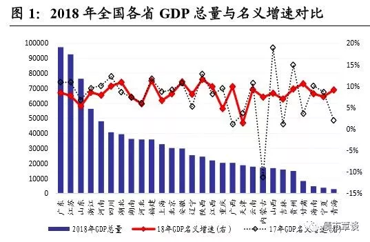 经济总量名列前茅。山东是中国经济最发达的省份之一,2018年GDP为76469.7亿,GDP总量居全国第3位。18年GDP名义和实际增速为5.2%和6.4%,固定资产投资增速4.1%。从经济结构看,第一、二、三产业占比分别为6.5%、44%和49.5%,工业发展迅速,基本形成以能源、化工、冶金、建材、纺织、食品等为支柱的主导产业。代表性龙头企业如海尔、青啤、潍柴动力、齐鲁石化、万华化学、山东黄金等。