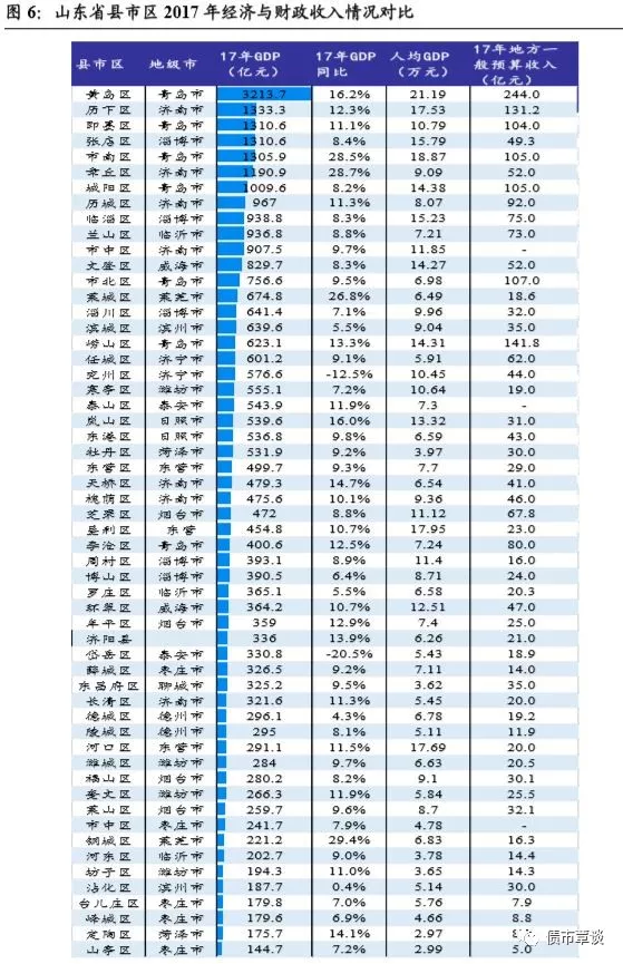 兖州区:交通与资源优势突出,国家重要煤炭基地,兖州火车站为全国一等货运站。17年GDP为723.12亿,增长7%,固定资产投资348.4亿,同比5.5%;一般预算收入44.4亿,下滑2.99%,地方综合财力68.8亿,财政自给率88%。辖区唯一核心平台为济宁市兖州区惠民城建投资公司,为区内基础设施和公用事业投融资主体,总资产298亿。