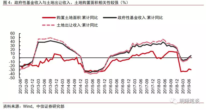 政府性基金收入:与土地出让收入相关性较高,受土地市场影响明显,明年增速或难有起色。由于土地出让收入在多数时间占政府性基金的比重超过80%,政府性基金收入增速的走势与土地出让收入以及土地购置面积增速相关性较高。政府今年的卖地情况与2015年非常相似,都是前几年土地成交较好,卖地收入增速较快,而当年的土地成交面积增速迅速降到-30%到-40%之间,唯一的不同在于今年的土地出让收入和政府性基金收入增速明显高于2015年,或许是由于房企在一二线城市拿地的比例有所提升。2015-2016年的政策刺激主要助长了一二线城市的房价,对房企当期拿地的刺激有限,政府性基金收入在此期间的复合增速在-7%左右。回到当下,在房企融资收紧、销售增速走弱的情况下,今明两年土地市场都难言乐观。尽管今年1-7月政府性基金收入累计同比阶段性转正,提升到了5.5%,但政策对土地市场向下的拉力较强,预计今明两年的政府性基金收入复合增速或低于2015-2016年,如果估计为-10%,那么2020年政府性基金收入将下滑到6.1万亿元。