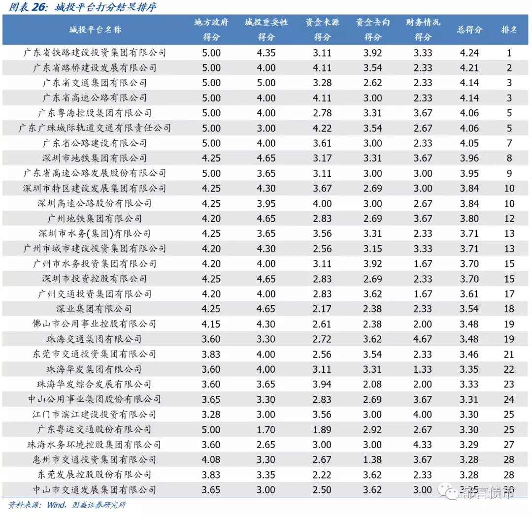 三、广东省城投平台打分排序