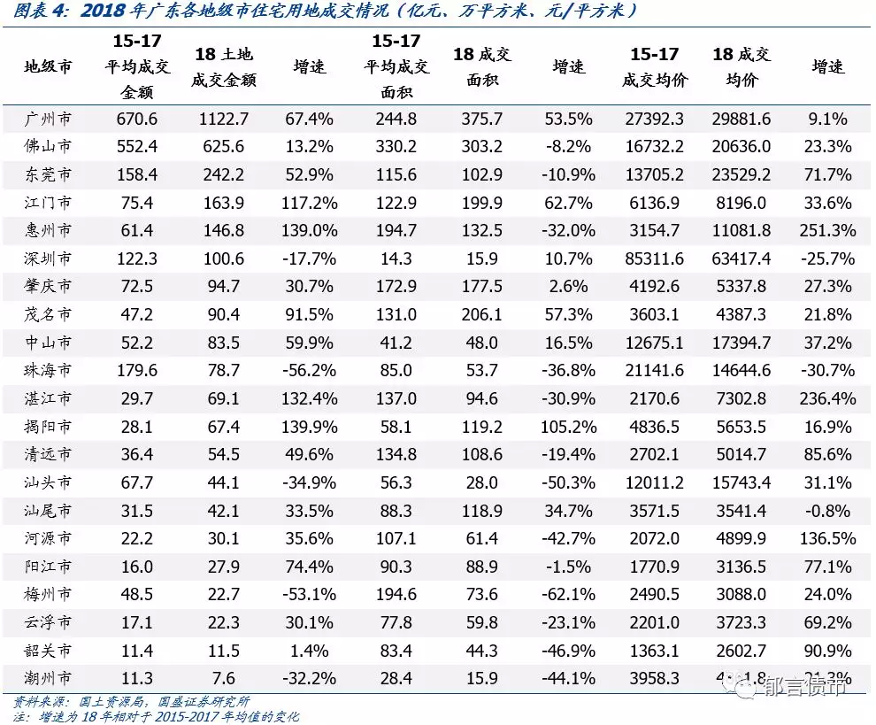惠州、湛江住宅土地成交金额及成交均价增长较快