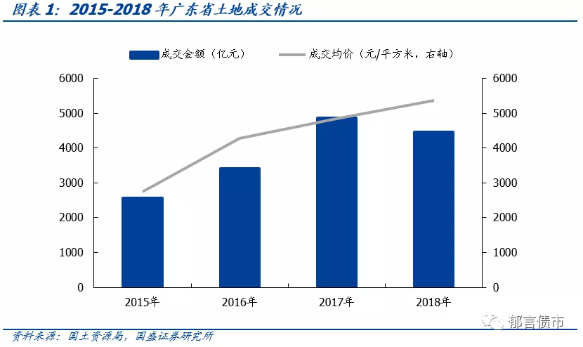 2018年广东土地市场量跌价升。2018年广东省土地成交金额为4456.3亿元,同比下降8.3%。成交面积为8312.8万平方米,同比下降17.2%。成交均价为5361元/平方米,同比增长10.9%。