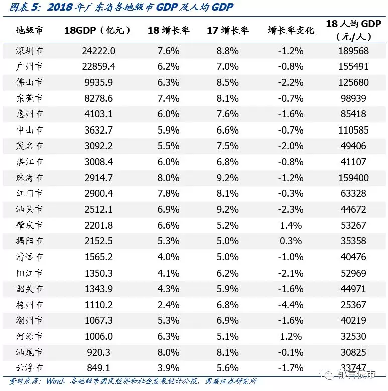 2. 广东省下辖各地级市发展较不均衡,珠三角地区实力相对较强