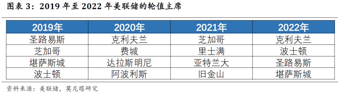 情况还不仅仅局限于此。根据此前美联储官员的对外表态,不赞成在7月份降息的官员包括但不限于:里士满联储主席Thomas Barkin、克利夫兰联储主席Loretta Mester、亚特兰大联储主席Raphael Bostic。不赞成降息的理由一是通货膨胀比人们想象的更接近目标;二是降息会强化市场对经济前景的负面看法;三是降息可能加剧金融失衡。需要注意的是,克利夫兰联储主席Loretta Mester是2020年的票委,里士满联储主席Thomas Barkin和亚特兰大联储主席Raphael Bostic是2021年的票委,这意味着未来美联储内部的分歧可能会继续存在下去(图表3)。