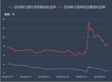 亚洲美元债投资级最差收益率2.4842%,较上周下行4.15bp,高收益最差收益率8.0512%,较上周下行17.66bp。