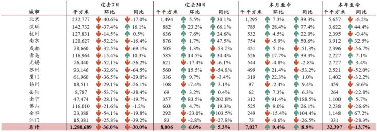 表 8:主要城市交易量情况,新房成交累计降幅继续收窄
