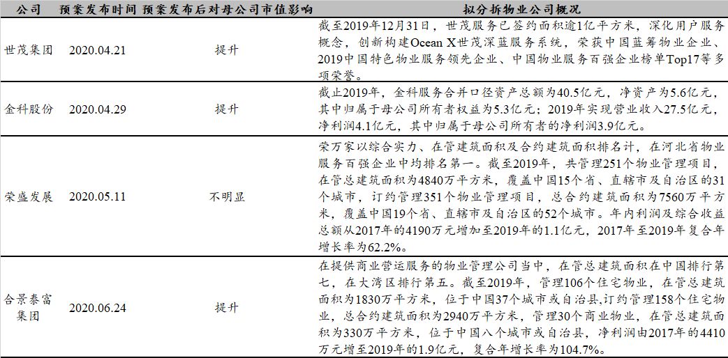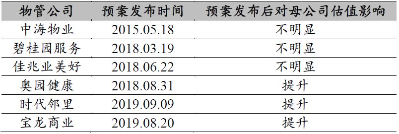 1.2 物业分拆上市对母公司估值波动影响各异
