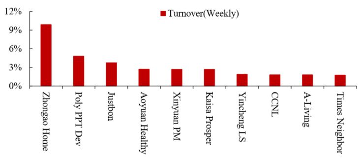 图 18:中奥到家、保利物业、蓝光嘉宝服务本周换手率居前