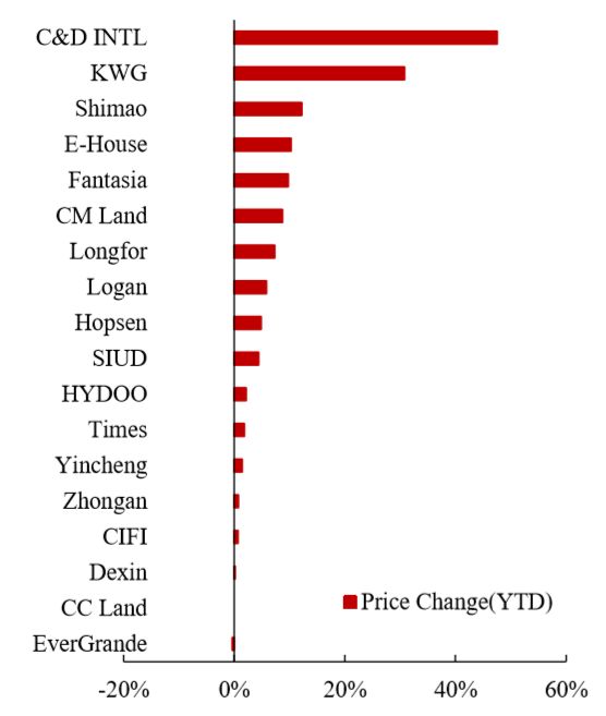 图 14:建发国际集团、合景泰富集团、世茂集团年初至今涨幅居前