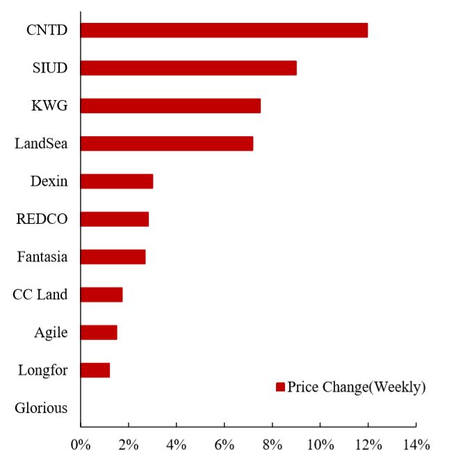 本周,中国新城镇、上实城市开发、合景泰富集团涨幅居前。建发国际集团、合景泰富集团、世茂集团年初至今涨幅居前。
