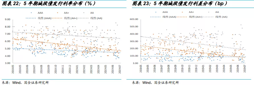4. 城投债发行利率整体下行,利差收窄效应明显