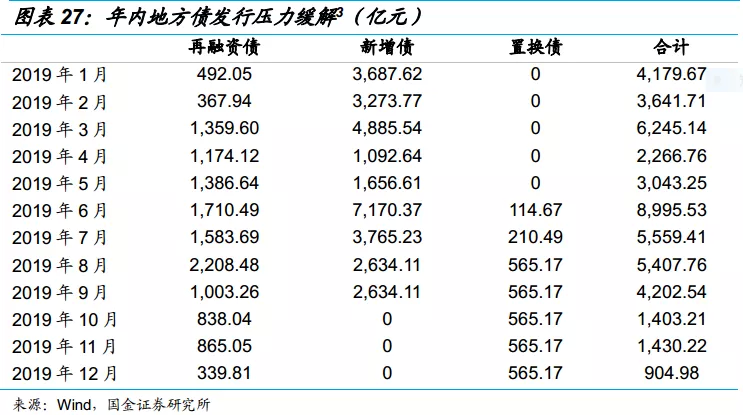 根据2019年新增一般债务限额0.93万亿元及专项债务限额2.15万亿元计算,若按照财政部要求,在9月底之前完成新增地方债发行,每个月仍需发行约2,634.11亿元左右的新增债,发行压力较前期有所缓解。