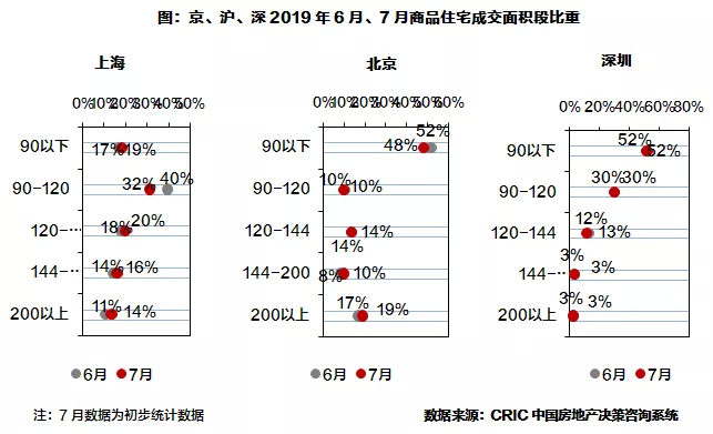 4.成交结构:京沪大面积、高档产品占比上升,深圳相对稳定