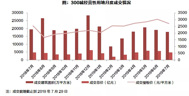 2019年7月,受周期性因素和供货压力增大的影响,房企在全国多个城市的推货量有所收缩。成交看似淡季不淡,但剔除上月已售未备案的结转数据后实则已显乏力,重点城市新房、二手房成交量连续两个月环比下跌,市场观望情绪愈加浓重,后继购房需求明显不济。土地市场7月量价齐跌,房企融资收紧犹如釜底抽薪,加之7•30会议预示调控仍将从紧,8月市场大概率将继续走弱。