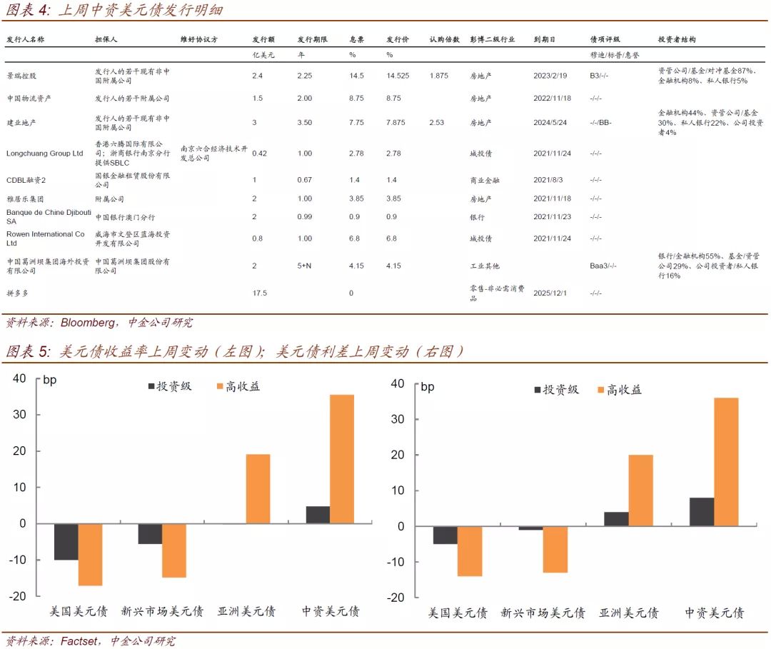 中金:上周中资美元债新发环比降62%,部分超跌城投和国企价格反弹