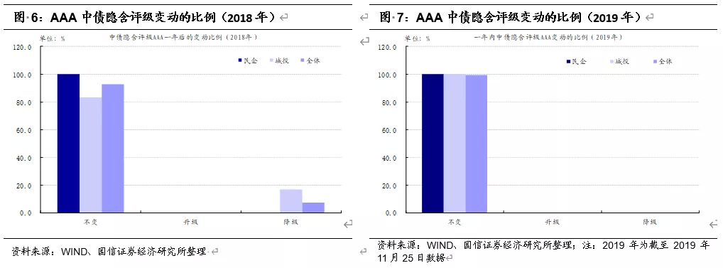 (3)中债市场隐含评级AAA的民企债,“另类降级风险”低于城投债;
