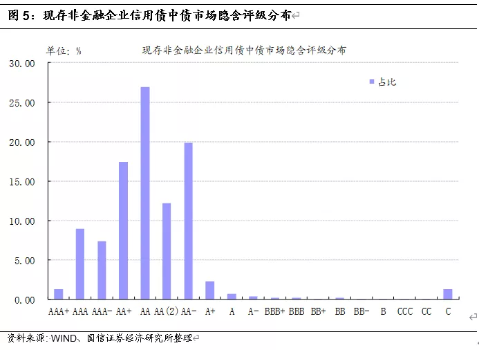 (4)中债市场隐含评级非AAA品种中,城投债“另类降级风险”低于民企债,尤其是AA-品种。