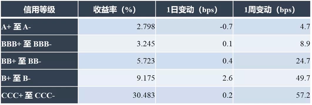 一级市场河钢集团定价。二级市场继续走弱,投资级名字表现平稳,高收益名字小幅下跌;行业方面,房地产板块小幅领涨,非必需消费、工业、科技板块领跌。