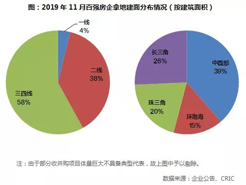 从11月百强房企拿地分布情况来看,一、二线城市共占42%,三四线城市成交比例较全年有所上调,企业回归二线城市的战略进入阶段性的平台期。