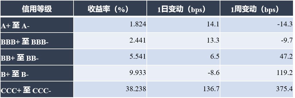 一级市场湖州经开集团定价。二级市场走弱,投资级名字全面下跌,高收益名字涨跌互现;行业方面,科技板块领涨,非必需消费、材料板块领跌。