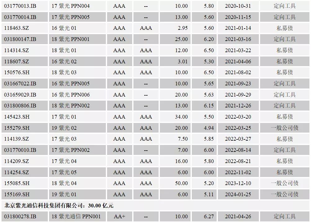 紫光系企业是清华控股最主要的子公司,为清华控股贡献了50%以上的资产规模和收入,也是清华系下最主要债务主体。截止2020年2月末,紫光系企业存续债券共28只,存续债券余额共405.46亿元,其中本年度到期规模130亿元。紫光集团的存续债券以私募债和PPN为主。
