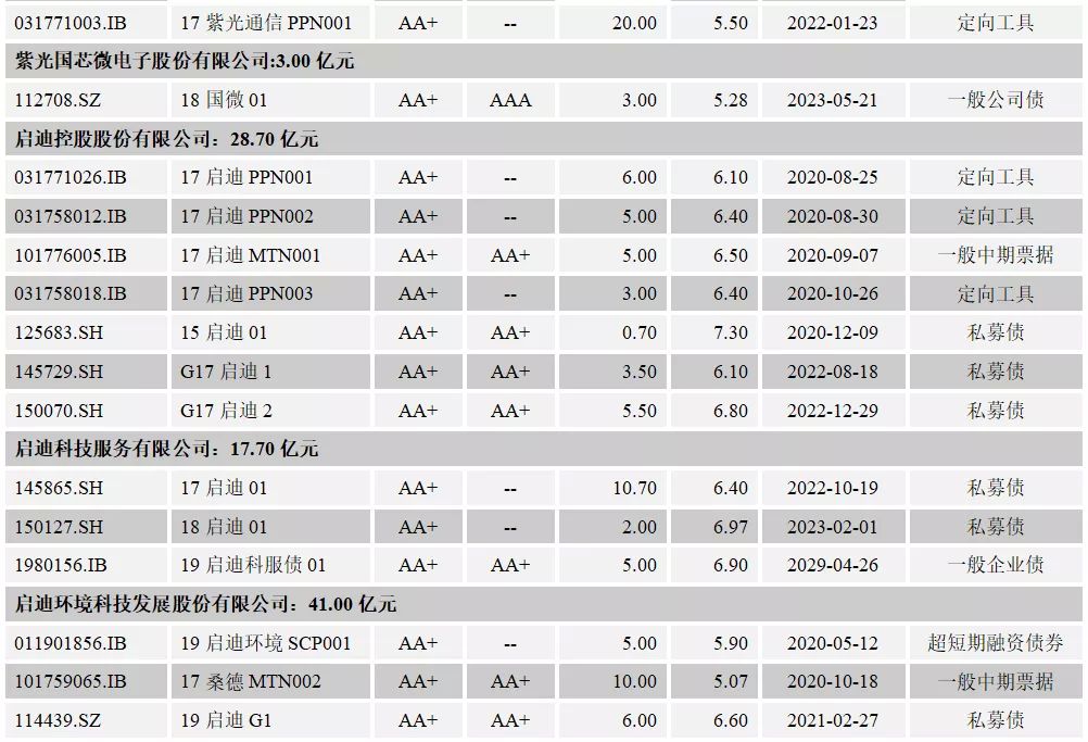 启迪控股主要运营清华控股能源环境板块业务,约占清华控股该板块总收入的一半。启迪系企业债券发行主体3家,存续债券共16只,存续债券余额共87.40亿元,其中本年度到期规模34.70亿元(其中启迪控股19.70亿元,启迪环境15亿元)。