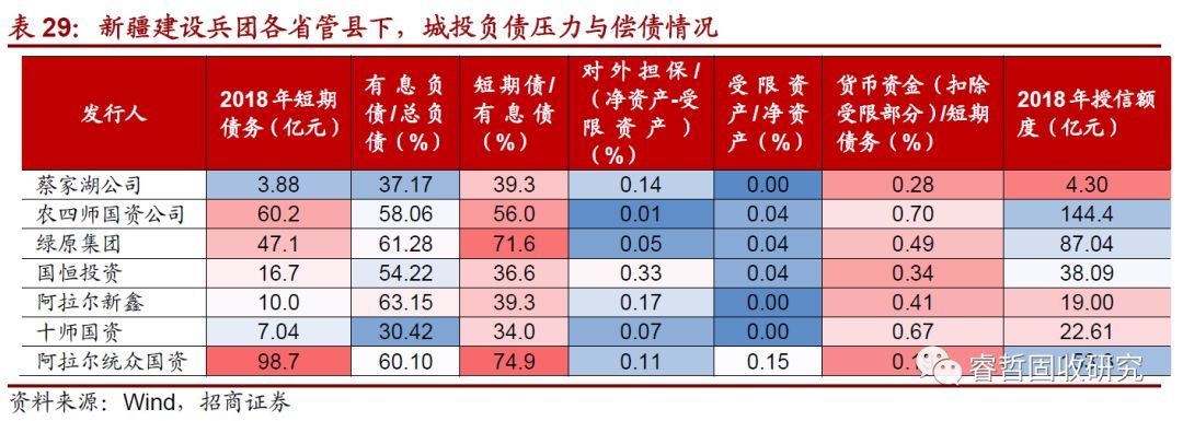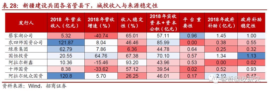 从发债城投自身财务数据来看,除农四师国资公司和阿拉尔统众国资以外,各平台在收入稳定性,负债和偿债指标上表现均不是很好,总体财务情况均较弱。