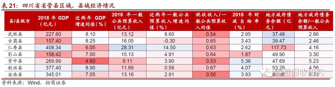 四川省下辖的省管县内目前共有七家发债平台,分别为武胜城投,古蔺国资,仁寿发展,彭山发展,兴资集团,国资经营和安岳城投。从县域经济情况看,四川省各省管县在大多数指标上表现均不佳。总体上,古蔺、彭山、资中、安岳县经济相对较弱。