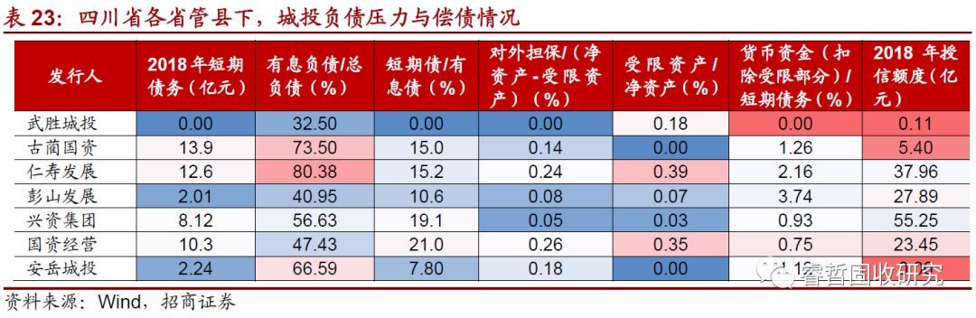 从发债城投自身财务数据来看,武胜城投、仁寿发展和国资经营三家城投财务表现较好。古蔺国资和兴资集团财务表现较弱,主要原因是收入绝对值小,稳定较差。