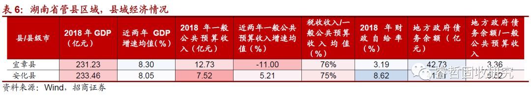 湖南省下辖的省管县内目前共有两家发债平台,分别为兴宜建投和梅山开发。从县域经济情况来看,两县GDP,收入等指标均较靠后,且一般公共收入对地方政府债务的覆盖能力较差。