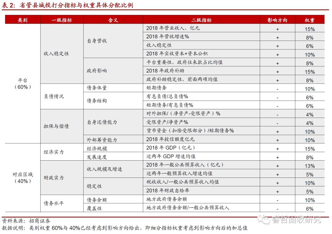综合考虑各指标重要性,分配平台指标的券种为60%,对应区域打分权重则为40%,权重细分情况如下所示。其中,予以经济实力和债务水平相当的权重,本质也是考虑到近两年地方政府融资受限后,债务滚动压力骤然提升,对地方政府的冲击力加剧。
