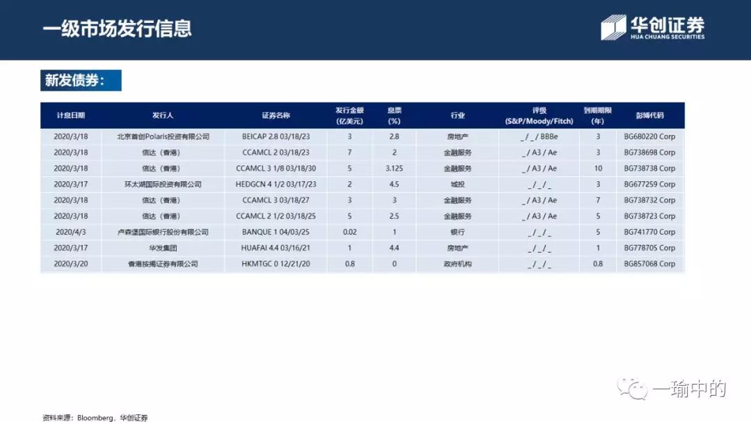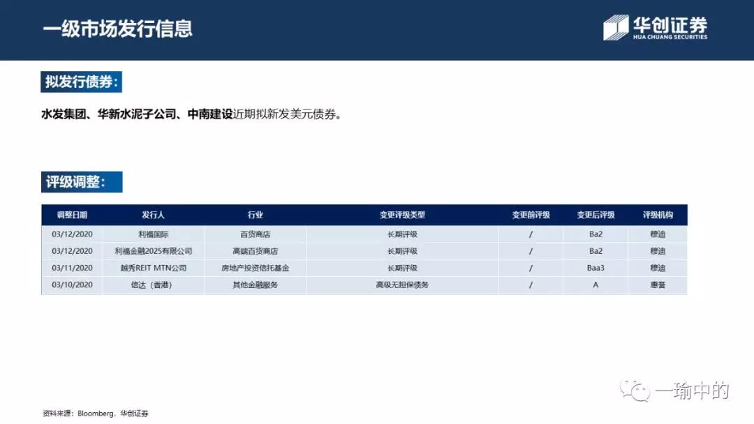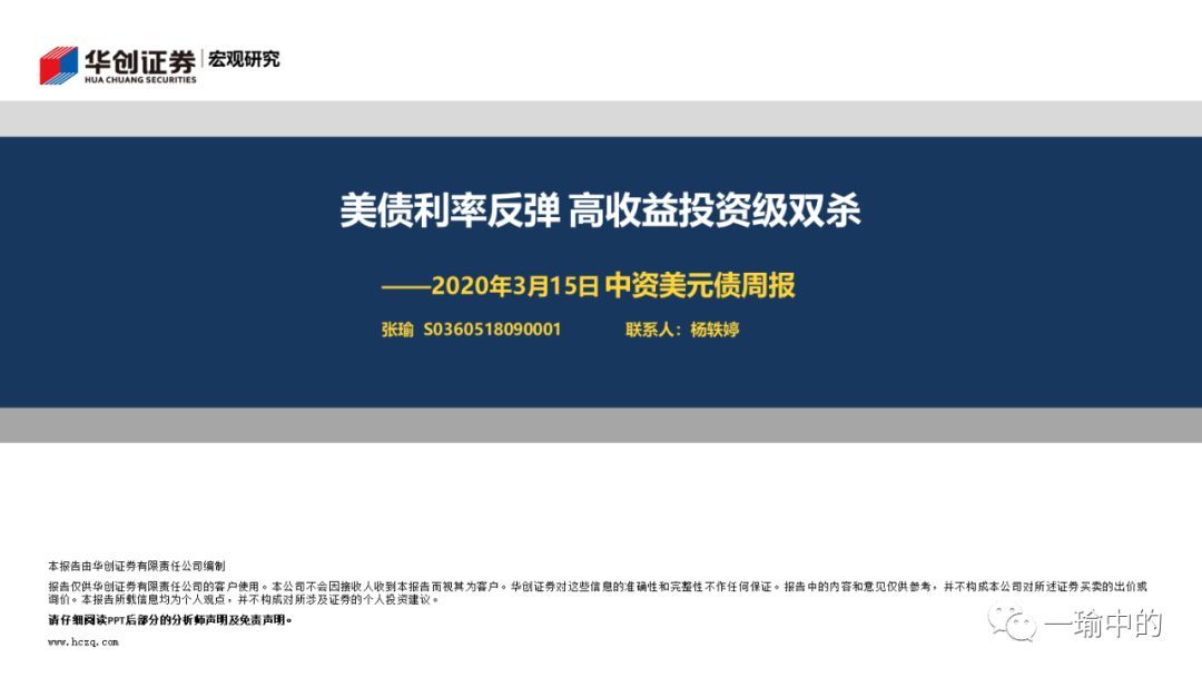 本文来自微信公众号“一瑜中的”,作者:张瑜、杨轶婷,原标题《【华创宏观·张瑜团队】美债利率反弹 高收益投资级双杀——中资美元债周报20200315》。