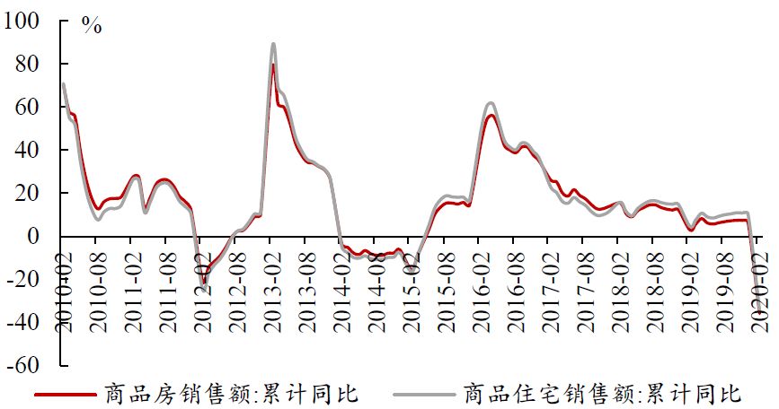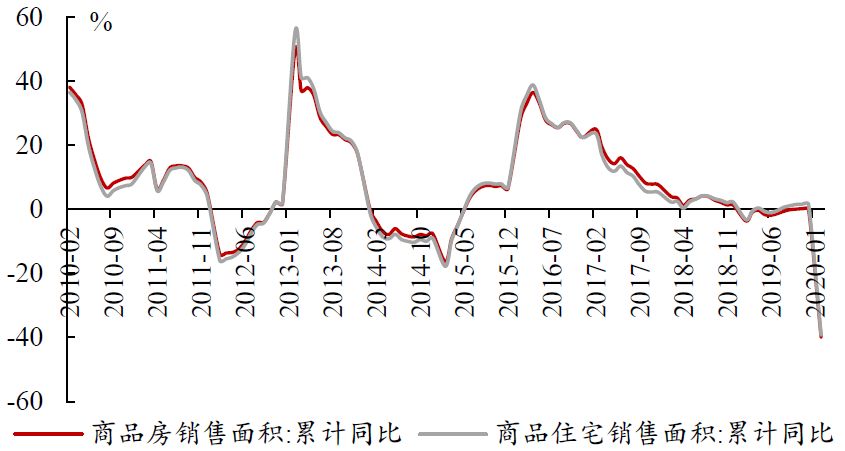 受疫情影响,1-2月全国商品房销售面积出现一定下滑。1-2月,全国商品房销售金额累计同比下降35.9%(去年全年为增长6.5%);销售面积累计同比下降39.9%(去年全年为下降0.1%)。疫情的冲击使得今年前2个月商品房销售受到较大影响;随着疫情逐步得到控制,各地的线下售楼处也在逐步开放。预计3-4月后商品房销售将会逐渐恢复。
