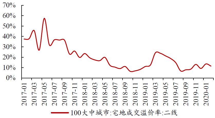 图39:2月二线城市宅地成交溢价率环比有所下滑