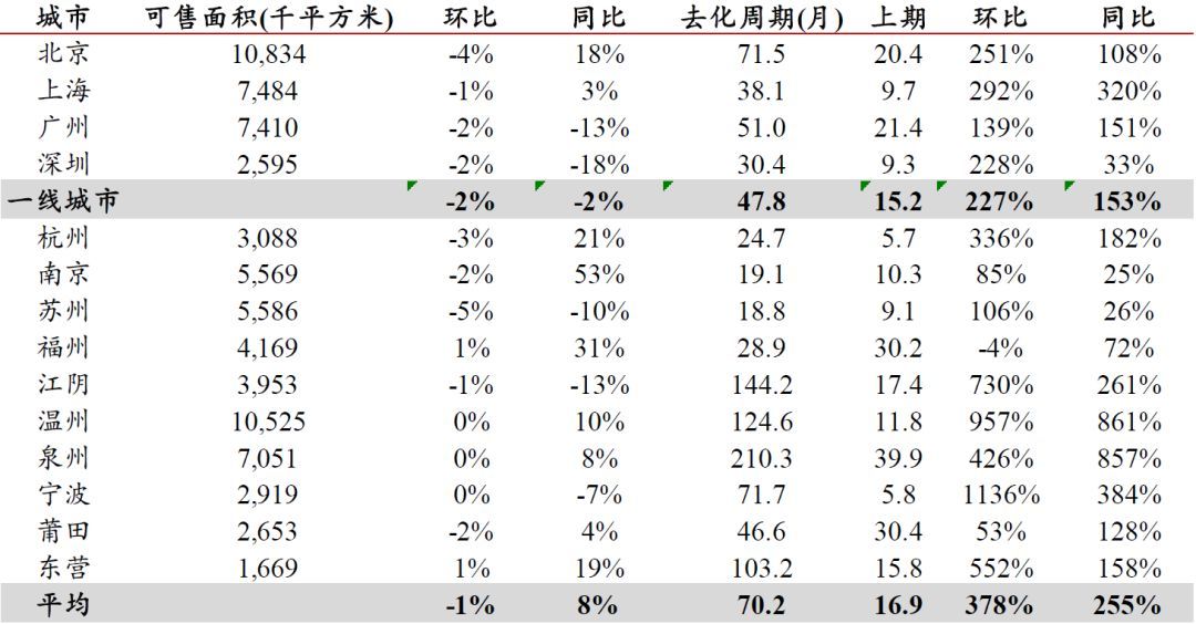 表 2:截至2月29日主要城市新房库存与去化周期情况,整体环比明显上升