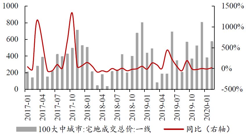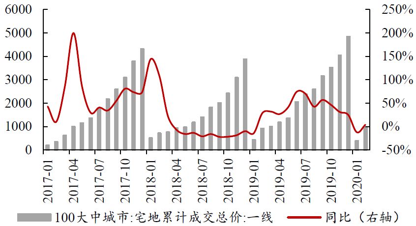 图30:1-2月一线城市宅地成交总价同比增长3.6%