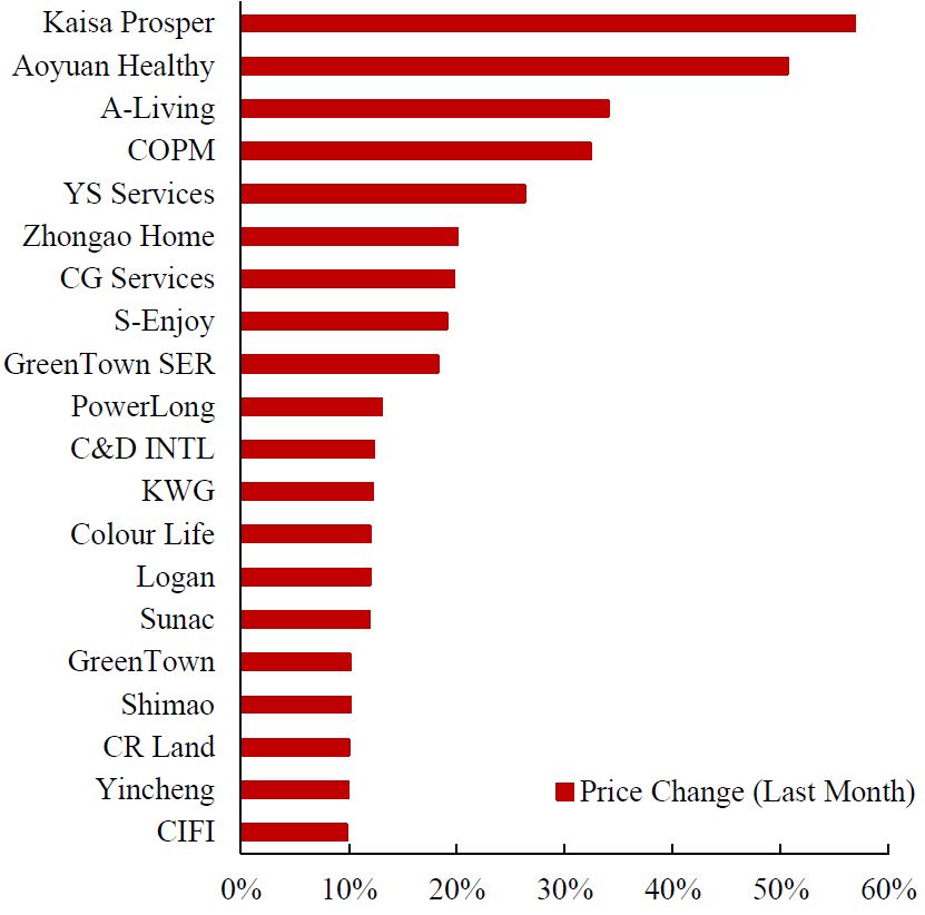 图1:佳兆业美好、奥园健康和雅生活服务2月涨幅居前