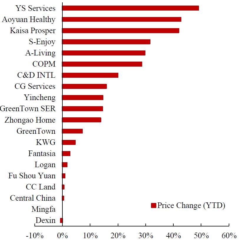 图2:永升生活服务、奥园健康和佳兆业美好年初至2月末涨幅居前