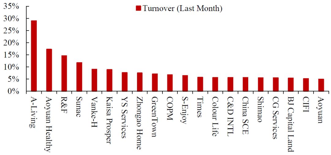 图 3:雅生活服务、奥园健康和富力地产2月换手率居前