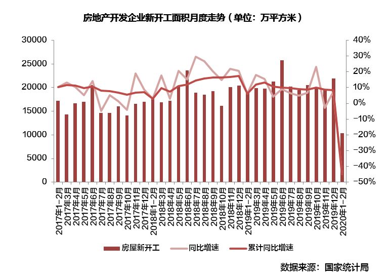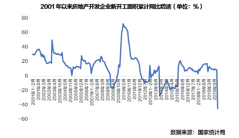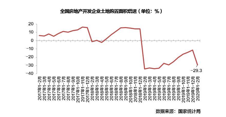 按历史规律来看,春节传统假期,外地务工人员返程,本就是开工淡季,新开工通常滞后于土地成交两个季度左右,2019 年土地购置面积创十年来新低,这也“拖累”2020年的新开工指标,房企不得不面临“无地施工”的尴尬境况。